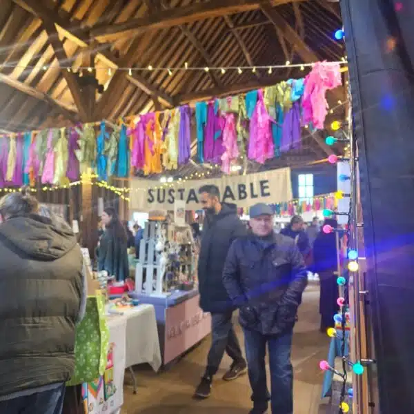 Street parking right outside venue or in car park. Flat surfaces with ramp to access indoor market, and surrounding area. There is a fully accessible toilet available.