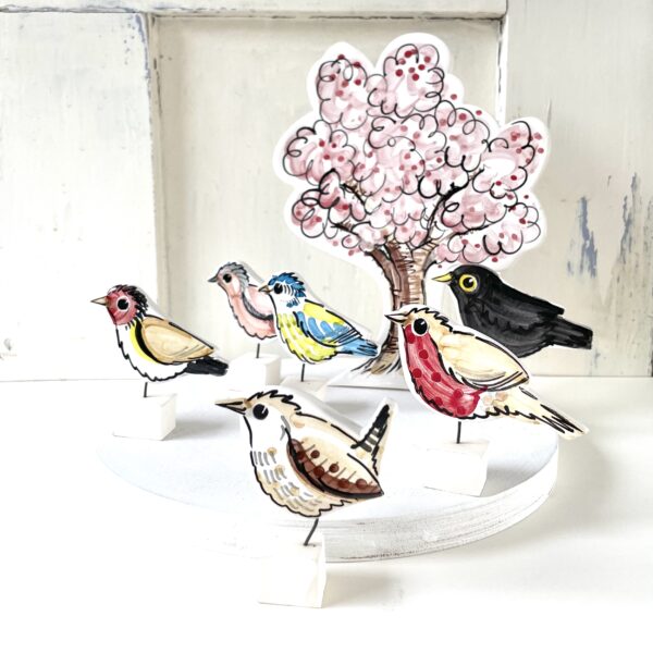 Happy handmade pottery animals and birds, inspired by nature, each piece hand modelled and then individually illustrated with ceramic colours and fired in the potters kiln to set the design.
