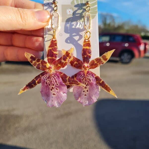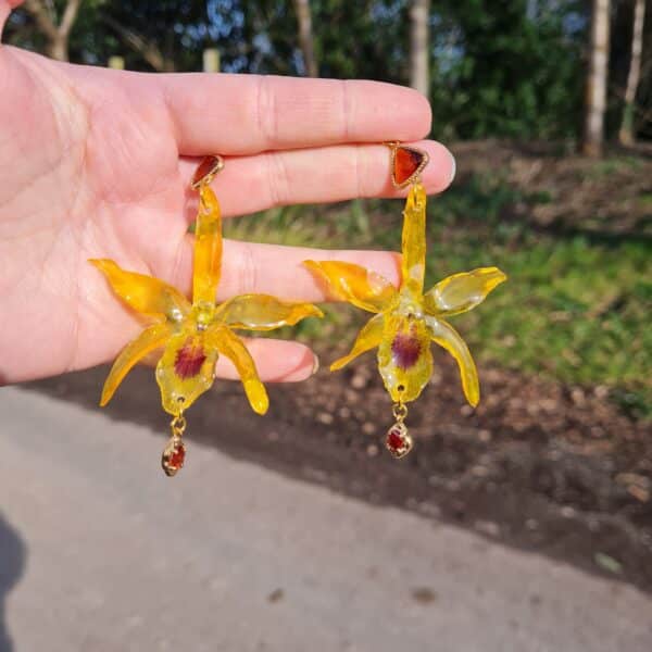 I have been growing orchids and various exotic plants for over 20 years, but during lockdown and being furloughed I decided to experiment into ways of preserving these flowers or turning them into jewelry.
